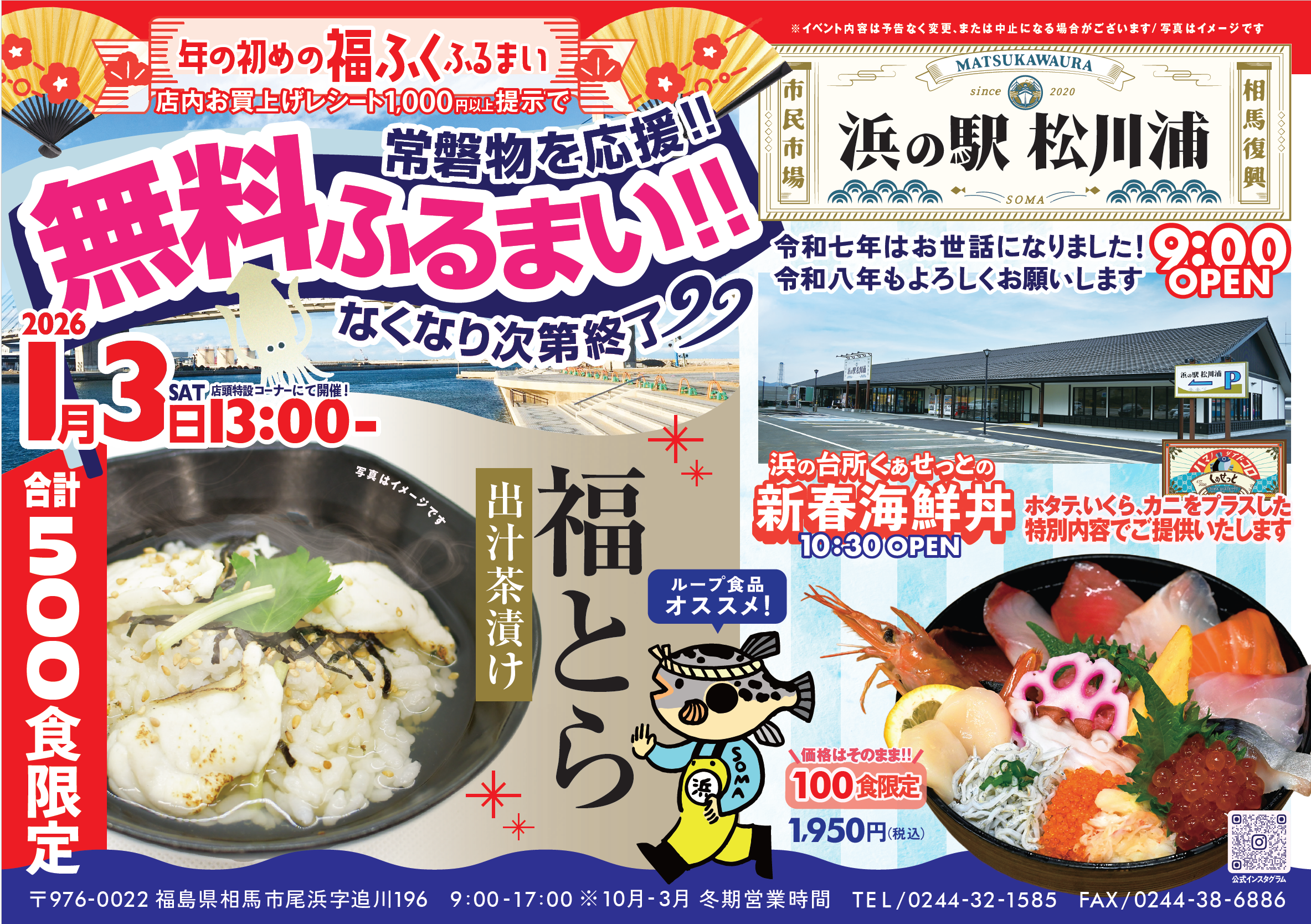 浜の駅松川浦は、生産者と消費者をつなぐ役割を果たしたいと思っています。同時に、社会情勢等で相馬地方に来たくても来られない方々とも「つながり」を広げていきたいと考えています。