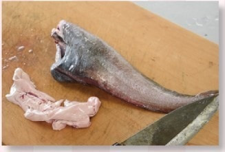 ※ヒレを持って少しずつ切り込みを入れながら落とすと肝を傷つけない