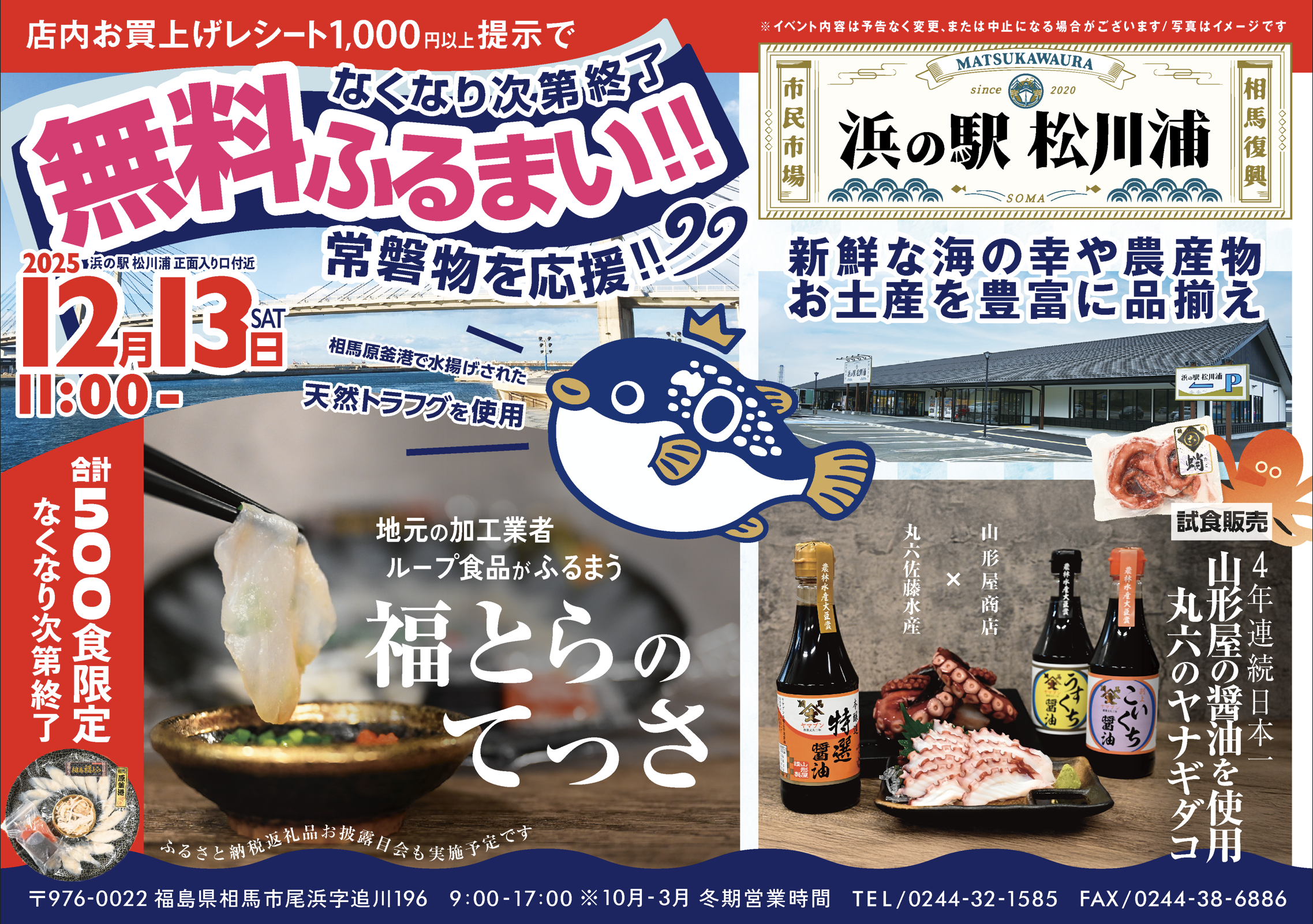 浜の駅松川浦は、生産者と消費者をつなぐ役割を果たしたいと思っています。同時に、社会情勢等で相馬地方に来たくても来られない方々とも「つながり」を広げていきたいと考えています。