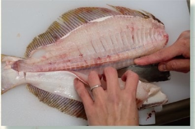④側線(身の中央にある節目)に沿って背骨に真っ直ぐ切れ目を入れ、中骨に沿って身を切り離していく