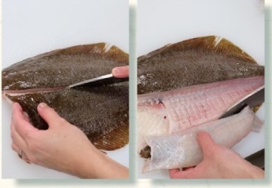 ④側線(身の中央にある節目)に沿って背骨に真っ直ぐ切れ目を入れ、中骨に沿って身を切り離していく
