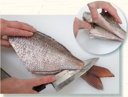 ①鱗を取り、頭を落とす