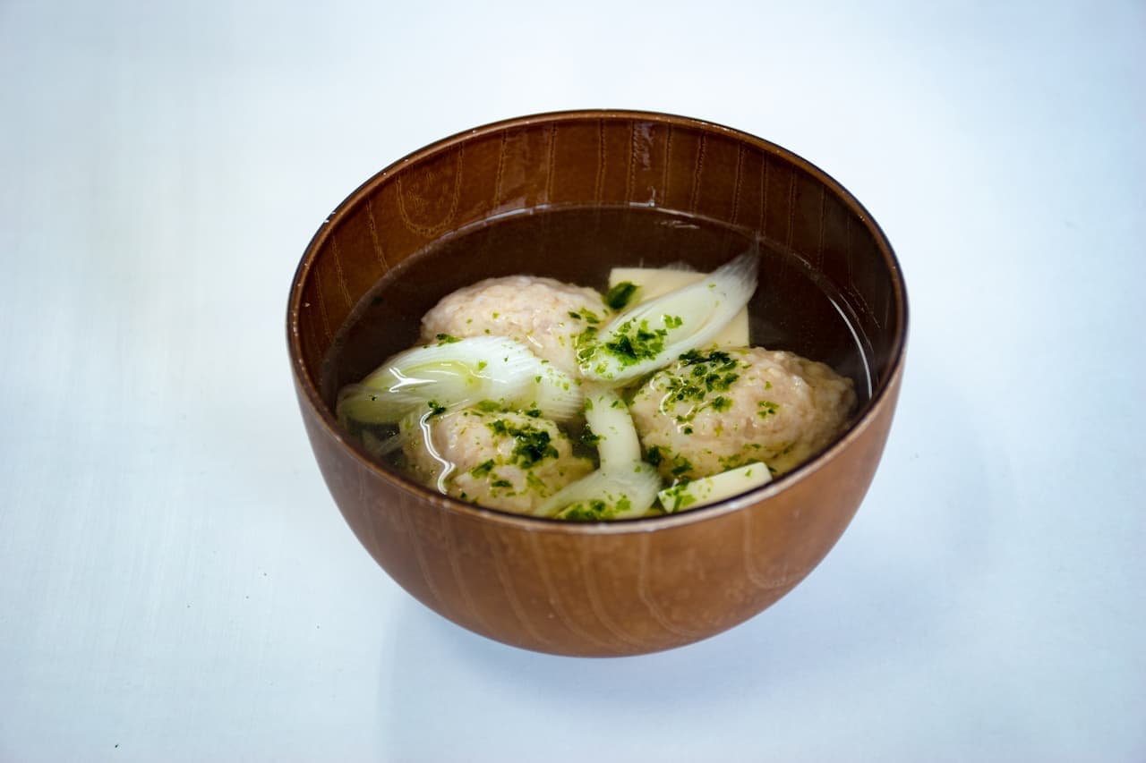 ④ ネギがしんなりして沸騰したらネギを取り出し、②のつみれを一口大の球状に形成し(手でもスプーンでもOK)鍋に入れ、再沸騰させる |