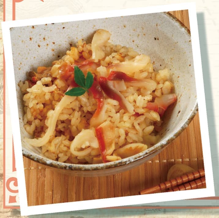 | ⑤ 炊きあがったら、③のホッキを入れて10分ほど蒸して完成 |